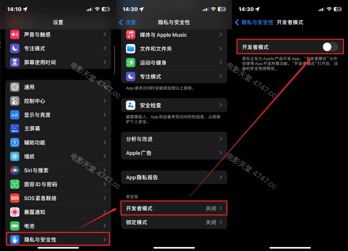 打开开发者模式,设置-隐私与安全性-开发者模式