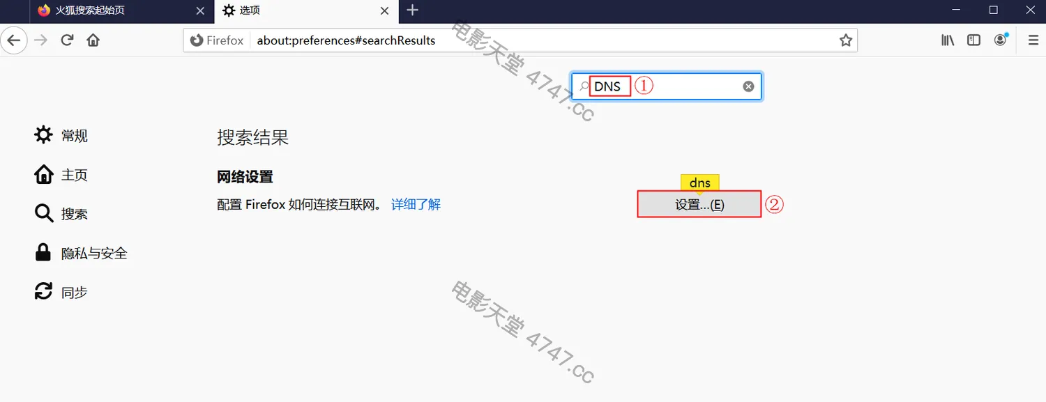 第二步:搜索框中输入“DNS”,点击【网络设置】中的【设置】按钮。